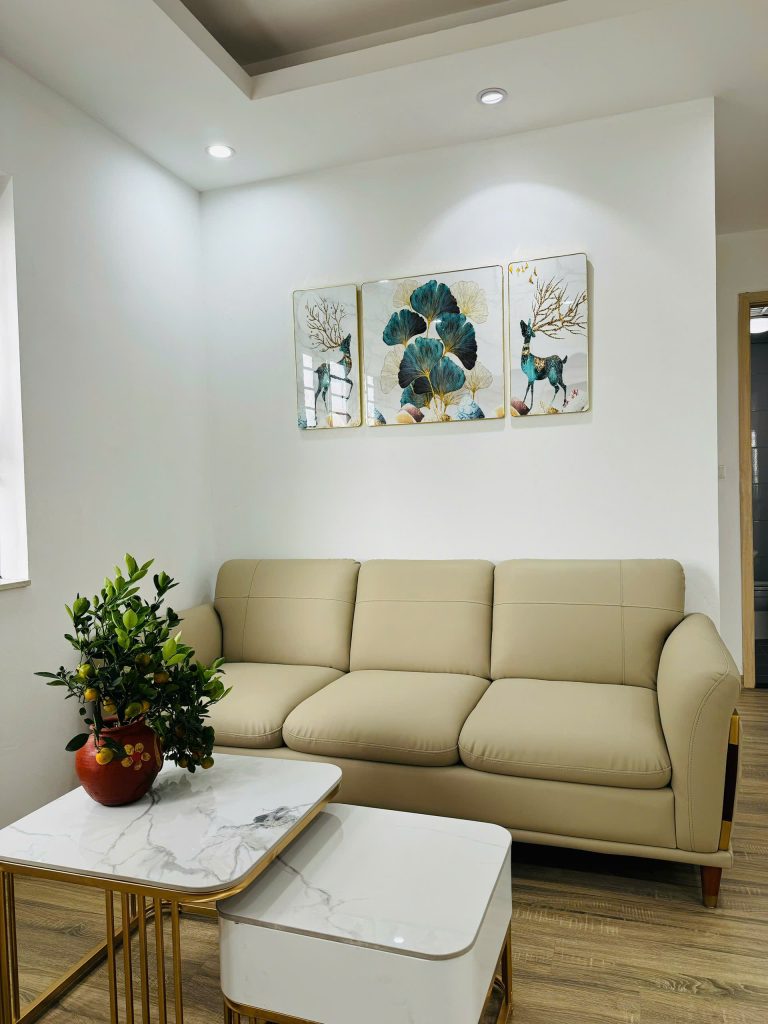 . Nội thất: Sofa, bàn ăn, tủ bếp, giường, tủ quần áo, trần thạch cao, sàn gỗ, quạt trần, vách, kệ tivi, nóng lạnh, điều hòa…