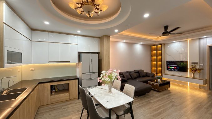 · Nội thất: Trần thạch cao, sàn gỗ, tủ bếp, bếp từ , máy lọc nước, bình nóng lạnh, điều hoà, máy giặt, bàn ăn, sofa, tủ quần áo, giường, giàn phơi, ti vi, tủ lạnh… Đầy đủ nội thất