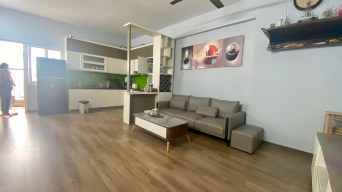 - ✅Nội thất căn hộ cơ bản có sàn gỗ, quạt trần, soffa, tủ bếp trên dưới, giường, tủ, điều hòa… khách mua về có thể ở ngay hoặc làm lại nội thất theo ý muốn.