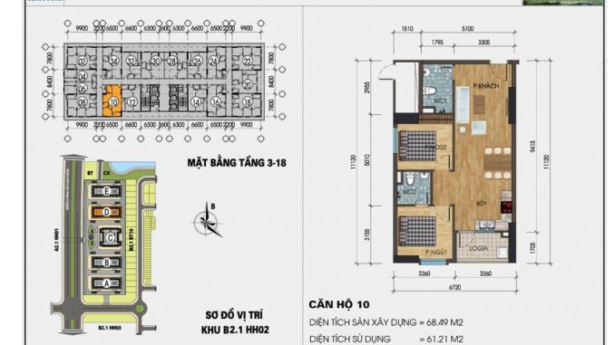 • Thiết kế: 02 Ngủ, 02WC, Phòng khách, Bếp, Ban công hướng Nam mát mẻ